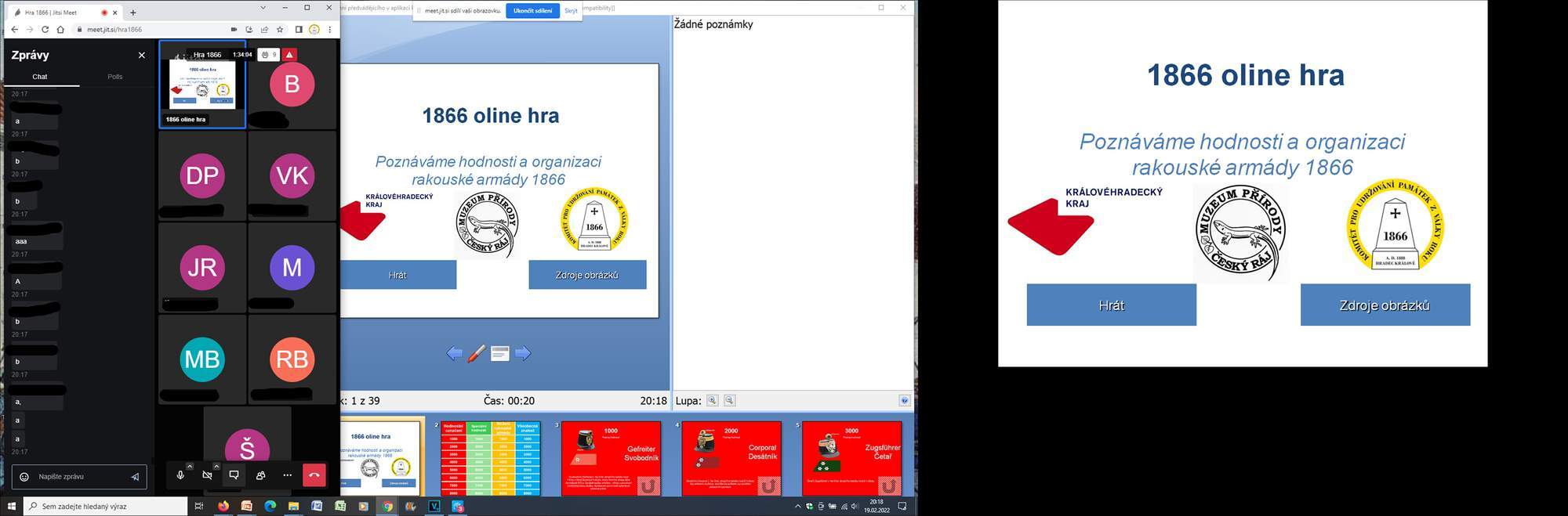 V sobotu 19.2. v 19:00 proběhla On-line vědomostní hra o roce 1866, probíhala v online prostředí prostřednictvím „jit.meet“. Podklady pro hru vytvořilo Muzeum přírody Český ráj ve spolupráci s Komitétem pro udržováním památek z války roku 1866.