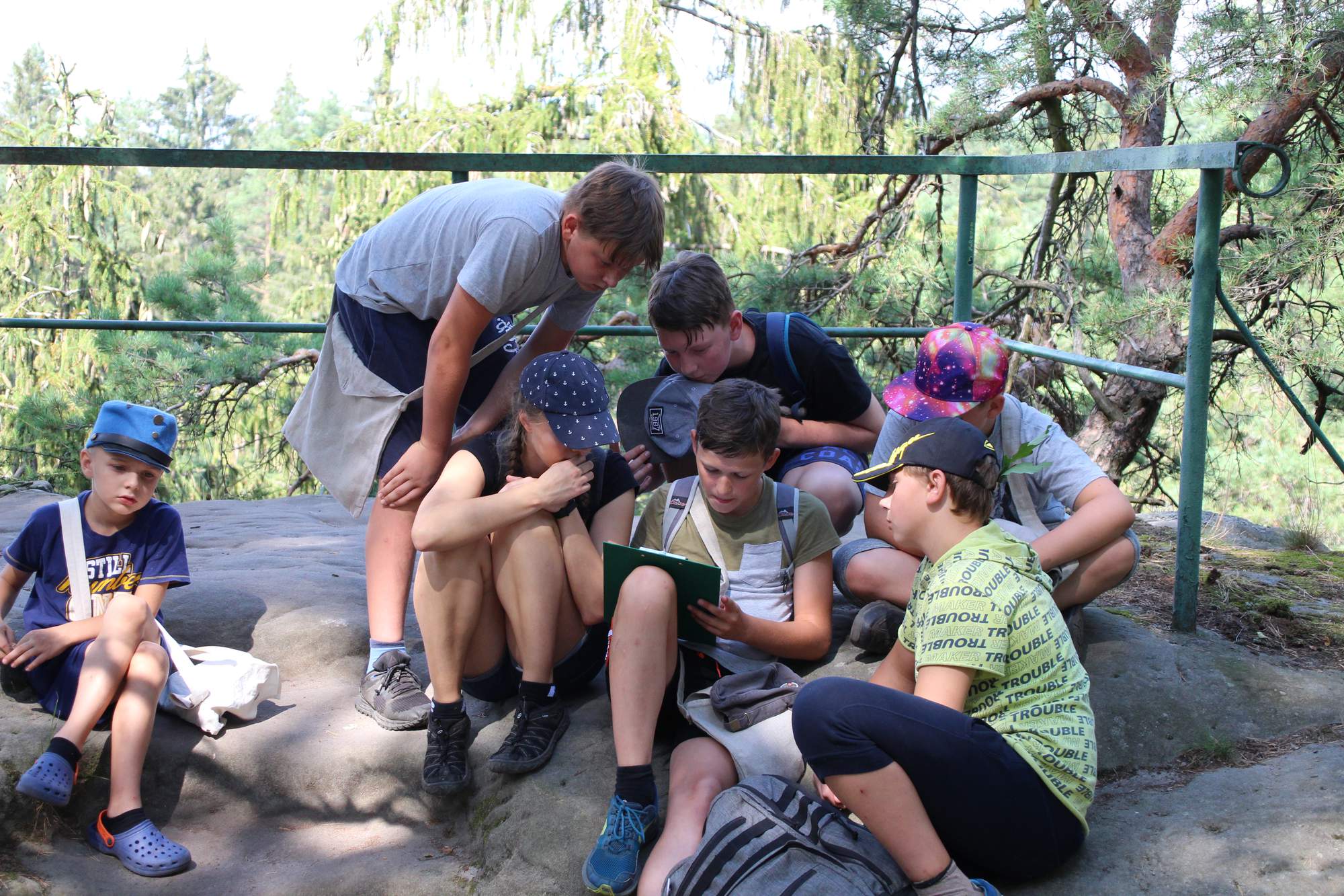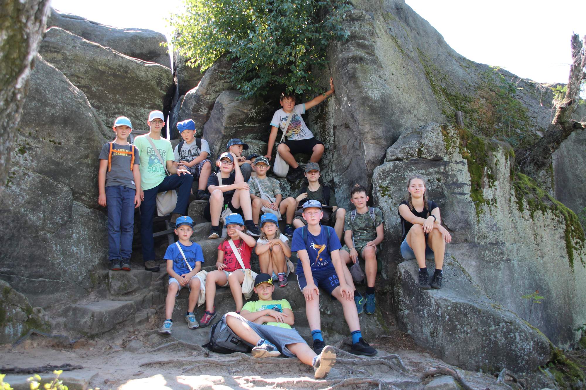 Poté následoval výlet za tajemnými rytinami ve skalách. Děti navštívily hlavu obra, nebo místo, kde byl podle pověstí zakopán poklad.